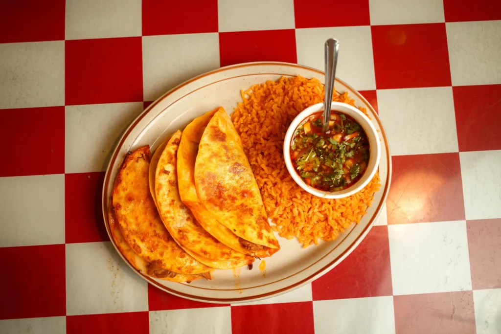 For something rich and satisfying, Los Reyes’ Quesabirria Tacos are hard to beat during the winter months. Crispy flour tortillas are packed with tender birria meat and melted cheese, then served with rice and a warm broth for dipping.